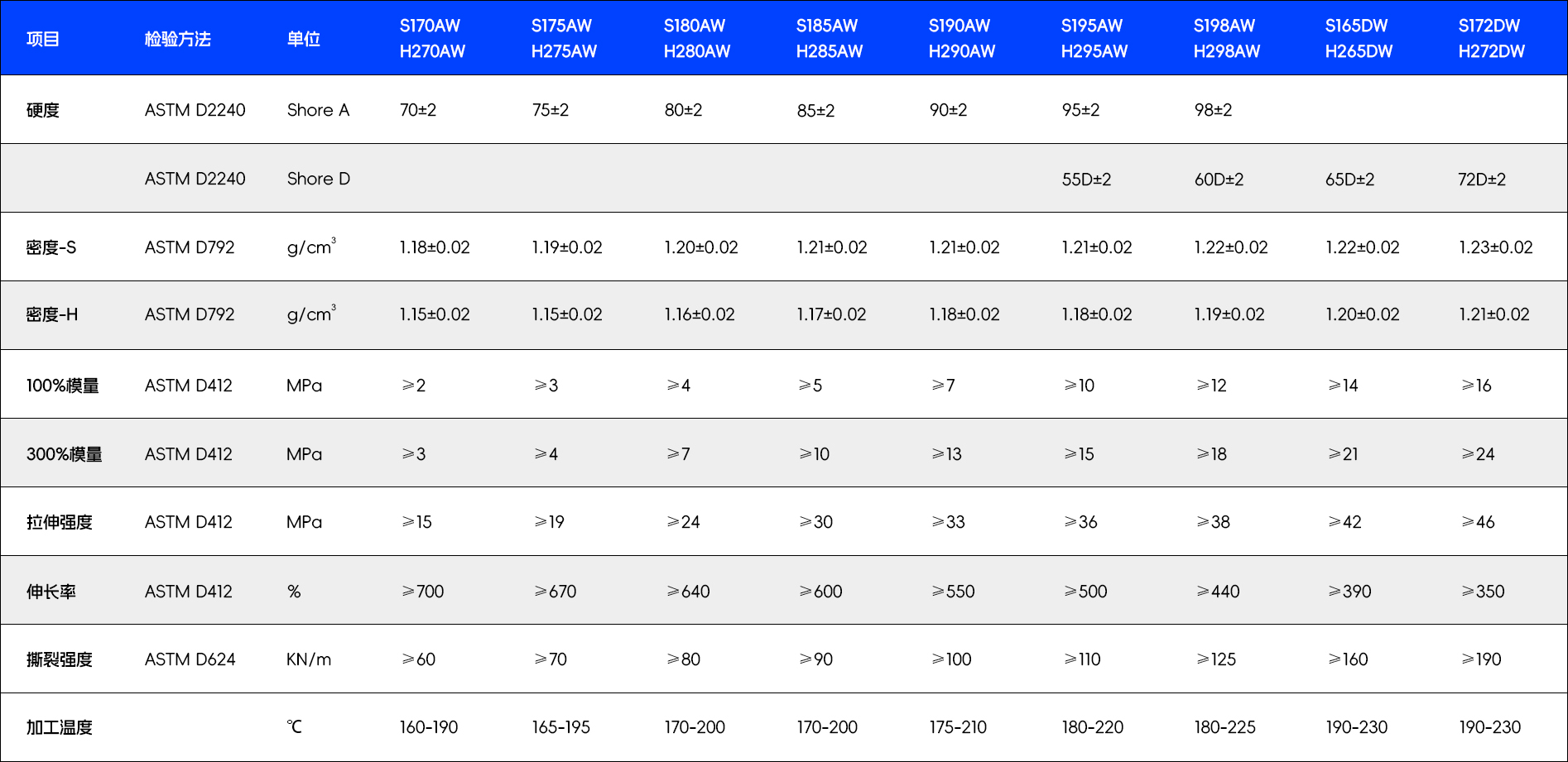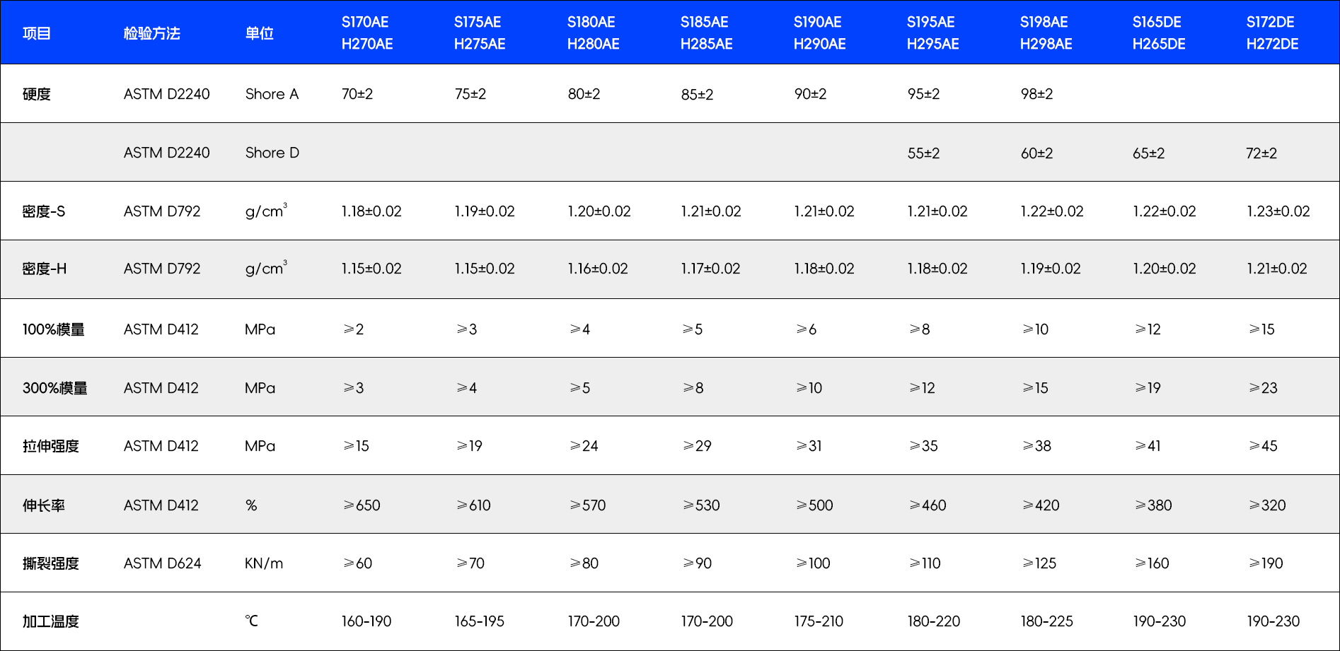 - 材料分类:S系聚酯类材料/H系聚醚类材料