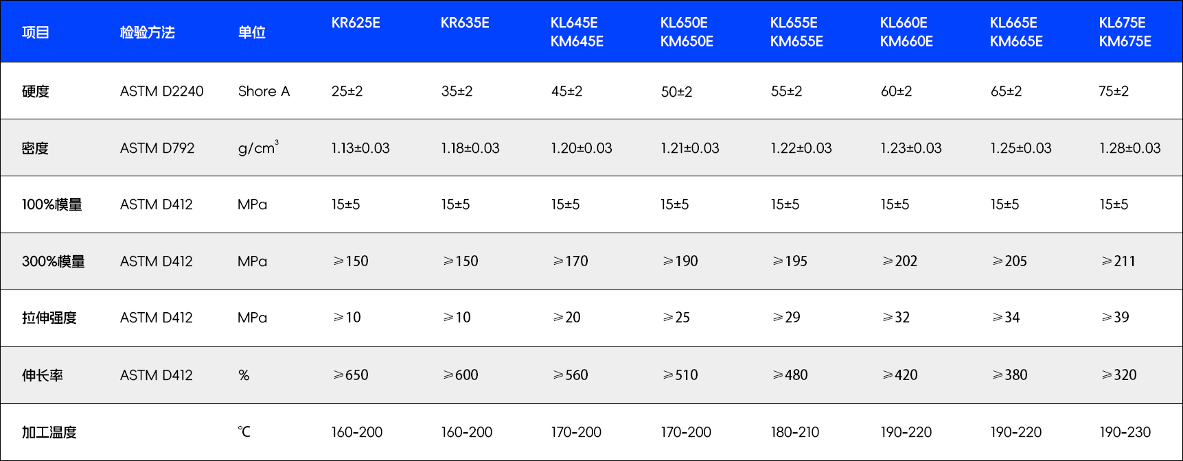 - 优异的成型性能/回弹性好/耐热性能/优良的柔顺性能